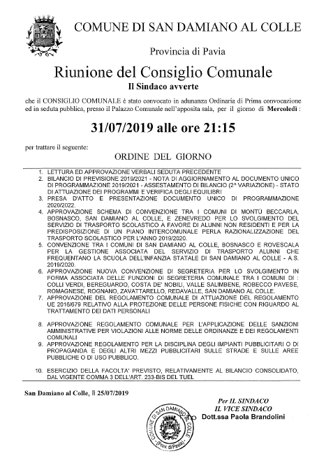 In allegato l'ordine del giorno della prossima seduta del Consiglio Comunale.