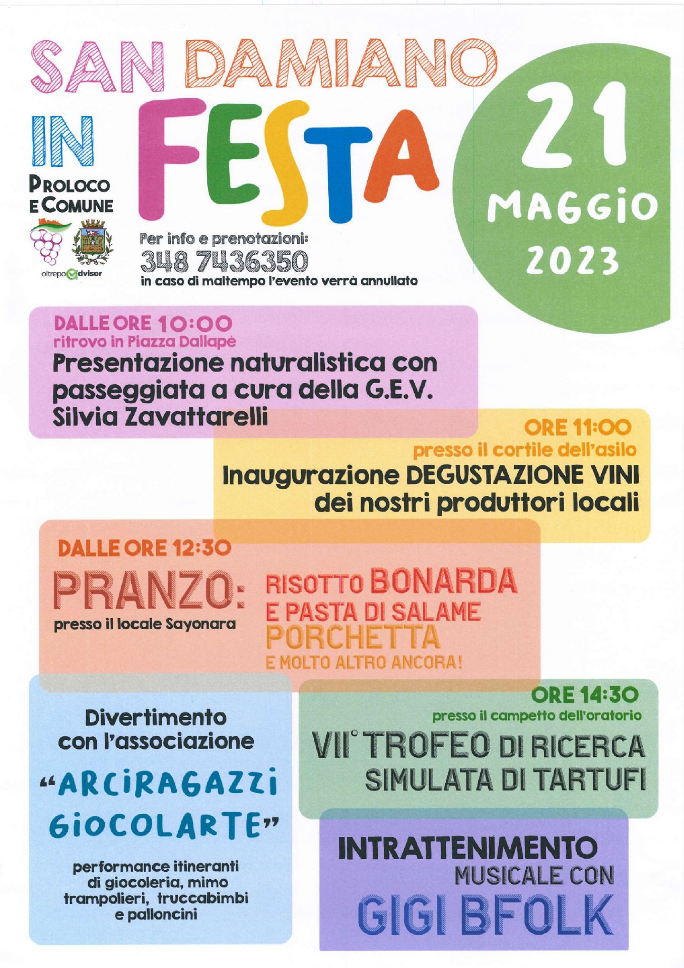 SI COMUNICA CHE L'EVENTO "SAN DAMIANO IN FESTA" PREVISTO PER DOMENICA 21 P.V. E' STATO RIMANDATO A CAUSA DEL MALTEMPO